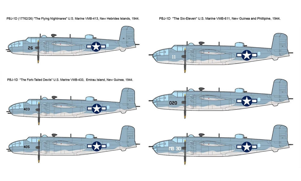 (1) PBJ-1D 17762/26 "The Flying Nightmares", US Marines VMB-413, New Hebrides 1944;