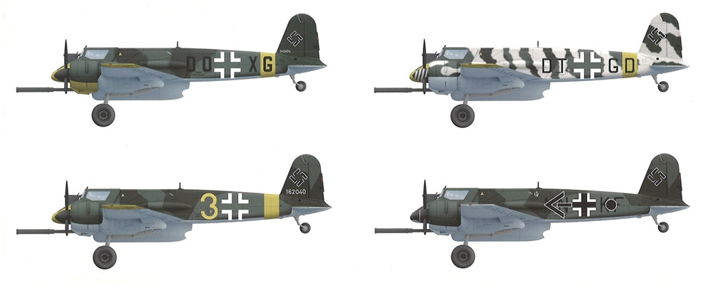 With interior and bonus clear fuselage & wing parts!German twin-engine ground-attack aircraft developed during WWII for anti-tank and close support roles. Entering service in 1942, it featured a heavily armoured cockpit and was armed with nose-mounted machine guns and cannons, including optional 30mm, 37mm, or even 75mm guns for tank hunting (see PKTAK48002). Deployed mainly on the Eastern Front, it proved effective against Soviet armour despite limited speed and engine vulnerability. Around 870 units of all variants were built.